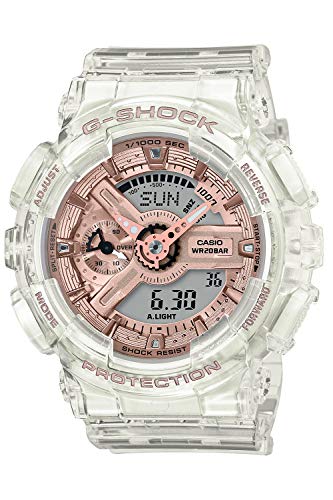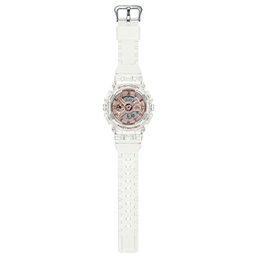 1983年の発売以来、飽くなき強さを求めて進化を続けるタフネスウオッチG-SHOCKから、通常よりも一回り小さなサイズが特徴のミッドサイズモデルがデビューします。三つ目インジケーター“DW-6900"、人気のデジタル・アナログコンビモデル“GA-110"“GA-120"をミッドサイズ化したベースモデルに、スケルトン素材のバンドとピンクゴールドの文字板でアクセントをつけ、カジュアルでスポーティかつジェンダーレスなモデルに仕上げました。ファッショントレンドを押さえたユースカルチャーにぴったりの小ぶりなG-SHOCKの誕生です。こちらは、“GA-110"のモデルです。