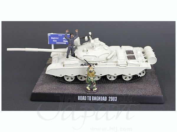 A mostly-finished and ready to display polystone model of an Iraqi T-62 MBT. Fully painted, just needs a few parts snapped on to be totally finished. Includes base and figures as shown here.