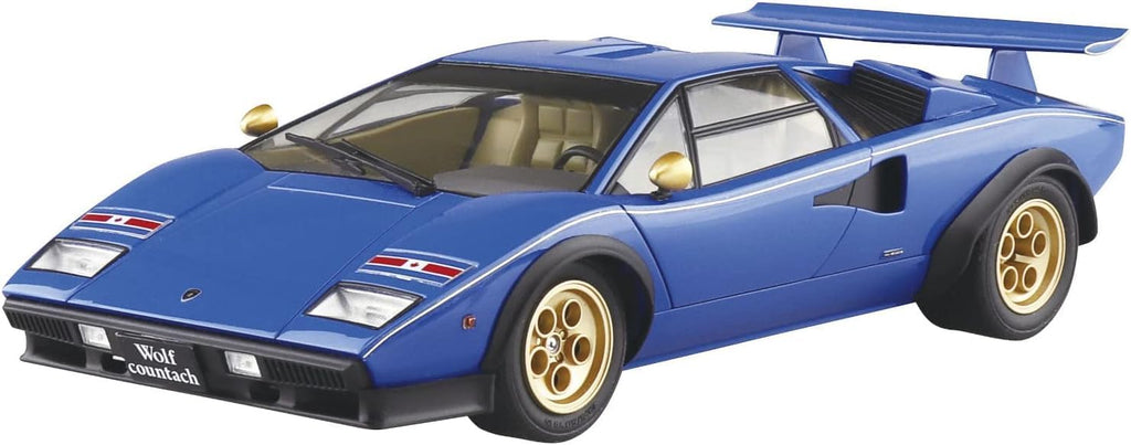 This kit provides a wonderful opportunity to build a classic supercar with significant historical character. Its unique blue and gold livery and distinct Wolf racing modifications make it a standout subject. The finished model captures the bold spirit and radical design that made the Countach an instant icon.