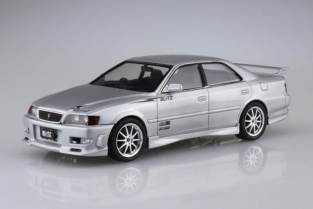 Assemble this Blitz-tuned Chaser and display a piece of Japanese touring car history. The complete exterior package, authentic exhaust, and period wheels deliver a faithful representation of 1990s tuning culture. Perfect for collectors who value professional tuner collaboration and cohesive styling.