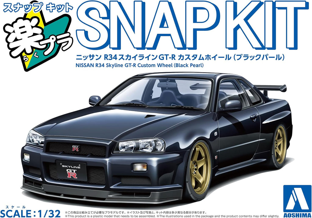 Aoshima 1/32 RakuPla Snap Kit No.12CU-BP Nissan R34 Skyline GT-R Custom Wheels (Black Pearl)