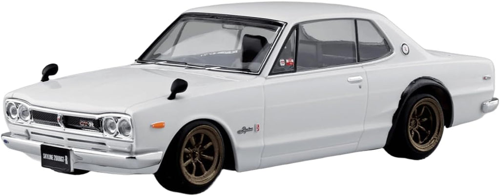 Showcase a timeless JDC legend with this crisp white snap-kit of the iconic C10 "Hakosuka" GT-R. This easy-build model pairs the car's celebrated shape with classic Watanabe wheels and a lowered stance, delivering an instantly recognizable style that assembles swiftly without any paint or glue.