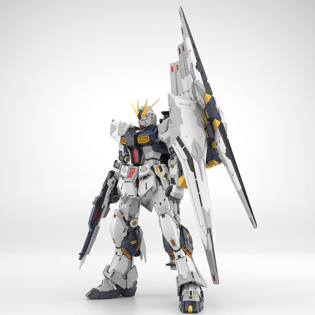 Contents: Full Nu Gundam kit, LED Unit with control module, display base, all weapons, metal parts, etching stickers, two pilot figures, and extensive marking sets.