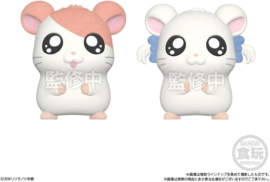 Bring home the fuzzy charm of your favorite "Tottoko Hamtaro" hamsters with this daring set of eight Bandai figures! Each 4cm-tall collectible is flocked for an irresistibly soft texture and comes with a display stand plus a piece of soda-flavored gum. Featuring six unique hamster friends—from adventurous Hamtaro to sweet Muffler-chan—these randomly packed figures are perfect for trading or collecting. Add a playful twist to your display and embrace the fun today!