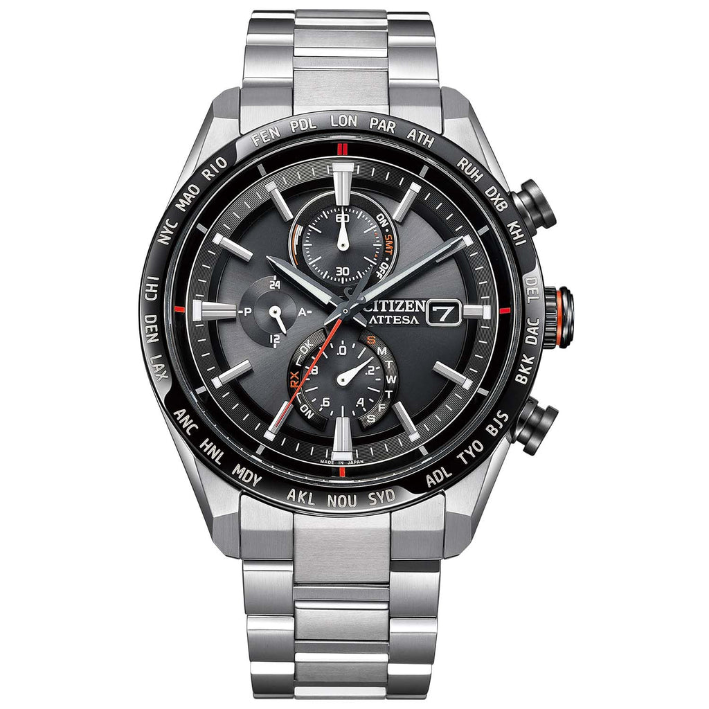 - 【チタニウムで次世代を進み続ける、シチズン ATTESA(アテッサ)】ACT Lineの大人気モデルからバリエーションモデルが登場。すっきりとしたシルバーのケースとバンドに、力強くクールな表情が映えるブラック文字板を合わせました。アクティブなシーンにもビジネスシーンにもフィットするエコ・ドライブ搭載電波時計です。