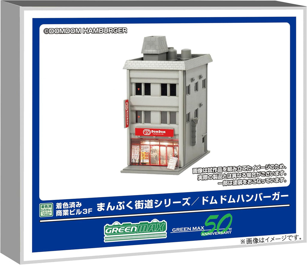 Features the authentic light gray ("Mouse No. 1") frontage of the DomDom Hamburger brand.