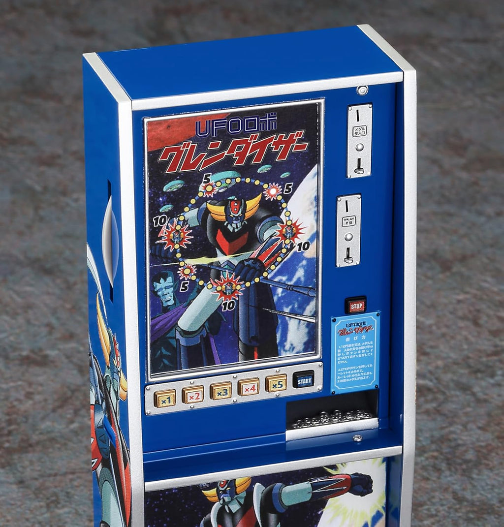 Add a vibrant and nostalgic slice of 1970s pop culture to your 1/12 scale scenes with this delightful accessory. Hasegawa's snap-fit kit recreates a classic candy store roulette game, brilliantly re-themed with iconic "UFO Robo Grendizer" artwork, complete with a working light gimmick and prizes for your figures to win.