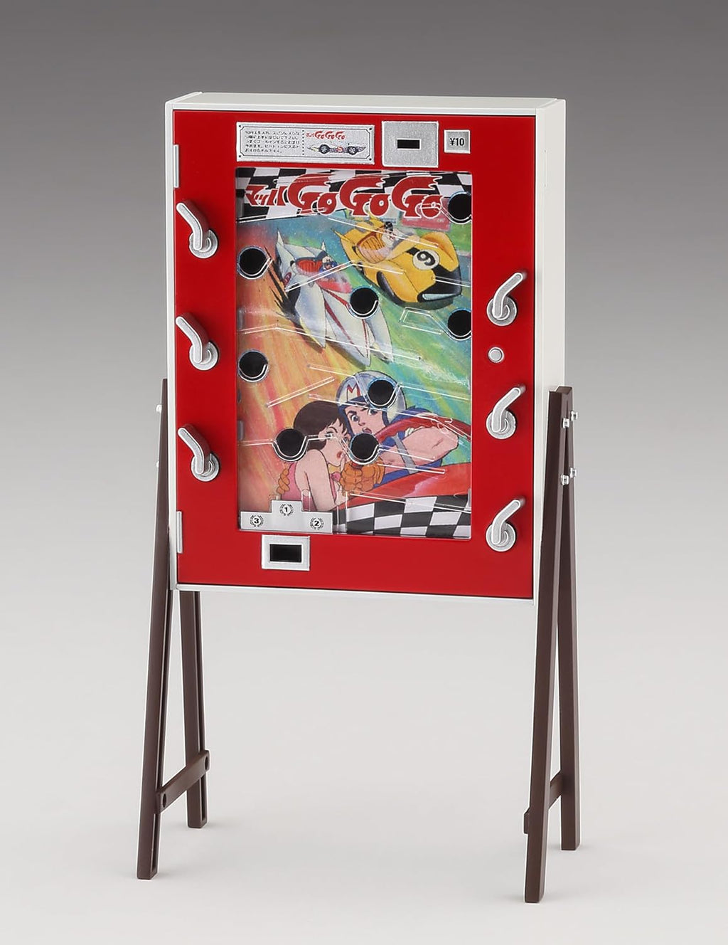 Assemble this retro game machine and build a nostalgic corner for your 1/12 scale figures. The combination of authentic Mach Go Go Go graphics, functional coin detail, and abundant candy accessories creates a lively period scene. Perfect for collectors who cherish Showa-era arcade memories and Speed Racer fans alike.