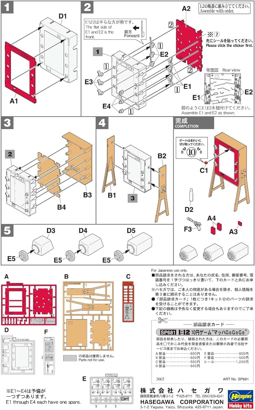 Relive nostalgic arcade charm with the Hasegawa SP681 1/12 10 Yen Game Speed Racer kit. This original design captures a classic ten-yen game machine featuring vibrant Mach Go Go Go illustrations. Stickers provide authentic front panel and candy packaging graphics. Bonus parts include coins, trophy, prize tickets, assorted dagashi candy pieces, ramune bottle, and glass jar container. Assembled size reaches 11 cm height with 5.8 cm width.