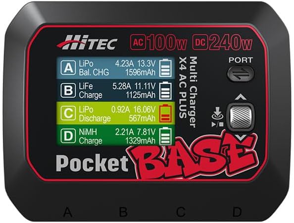Charges 1-4 LiPo, LiFe, Li-Ion, or Li-HV cells (up to 4S) and 1-8 NiMH or NiCd cells, handling virtually all common hobby batteries.