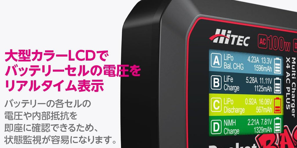 Satisfy all your RC charging needs in one compact, capable unit. The HiTEC 44367 Multi Charger X4 AC PLUS consolidates powerful charging, discharging, and power supply functions into a single, portable device perfect for your workshop or track bag.