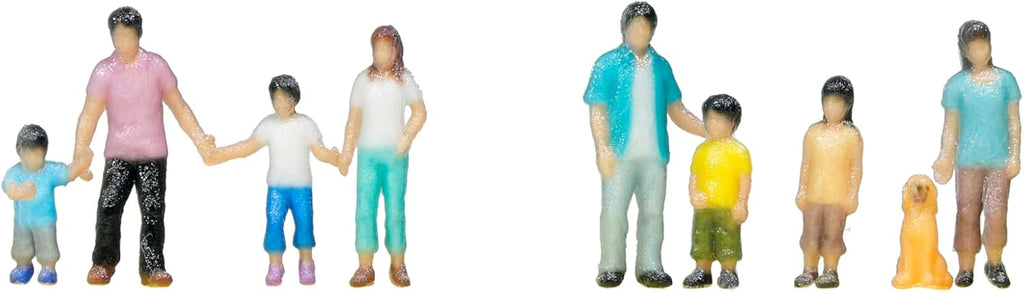 Fill your model town with warmth and everyday activity using this charming set of pre-painted figures. Featuring two distinct families and their playful dog, these characters bring a sense of life and casual storytelling to residential streets, parks, and shopping areas.