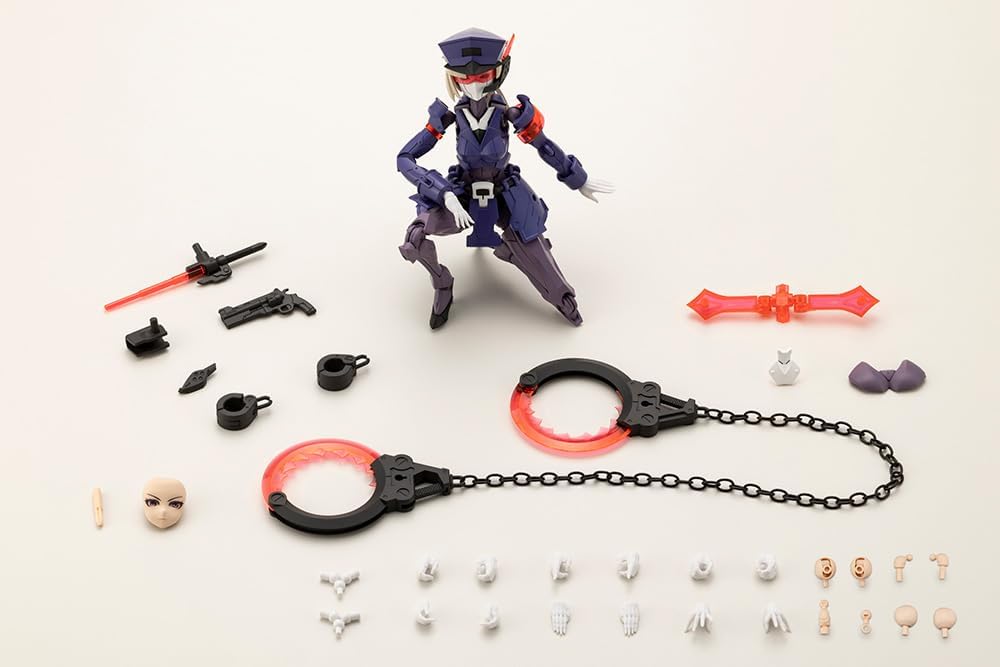 Introducing Valiant, a formidable new officer joining Kotobukiya's MegaloMaria universe. This highly articulated model kit brings a law enforcement theme to life with an impressive range of motion and interchangeable components. From her striking weaponry to her expressive facial features, every element combines to create a dynamic figure ready for display.