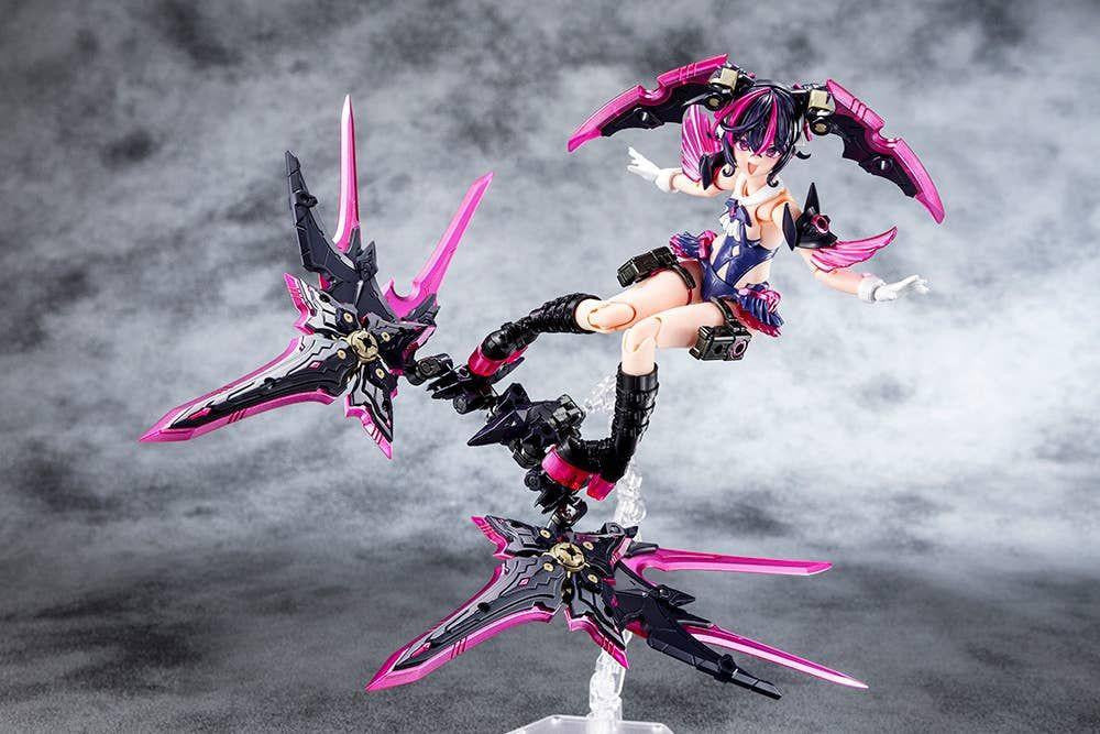 Unleash a bold new vision in the Megami Device lineage. Desire Maiden Raider emerges from the collaboration of illustrators Amama and Task, introducing a fierce design with bat-like wings, aggressive armaments, and a body engineered for dynamic, expressive combat poses.