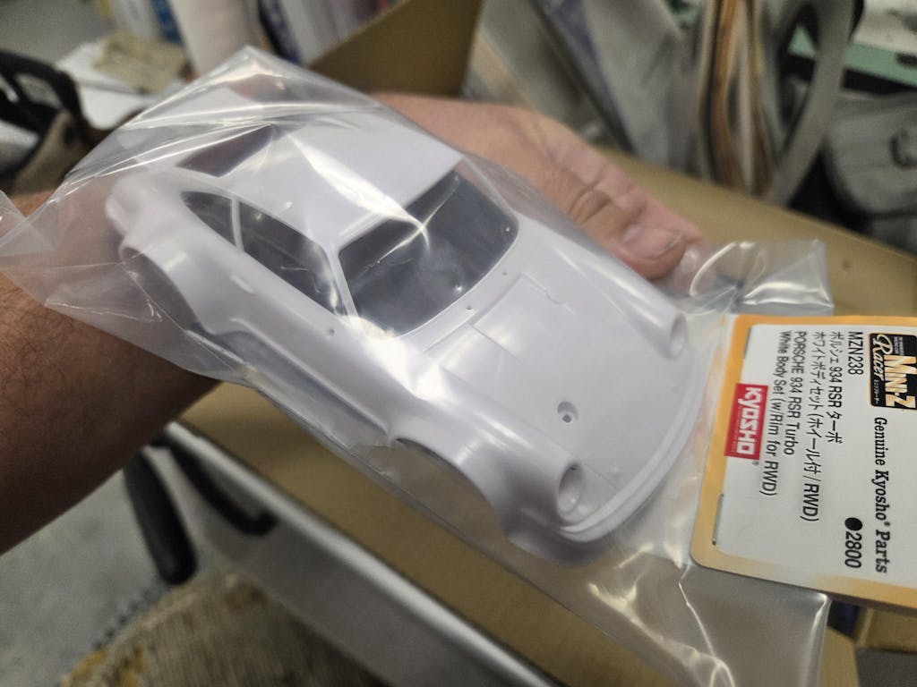 Contents: One white polycarbonate Porsche 934 RSR body, one set of 2WD-style wheels.