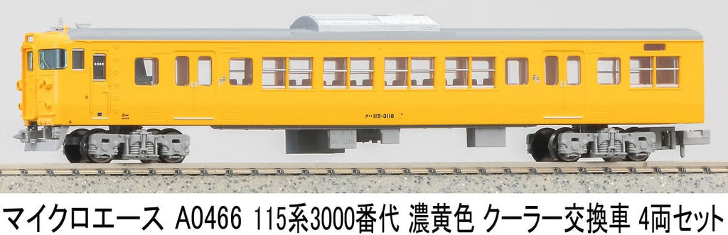 MicroAce A0466 115 Series 3000 + 3500 Subseries Dark Yellow Air Conditioner Replacement Cars, 4-Cars Set