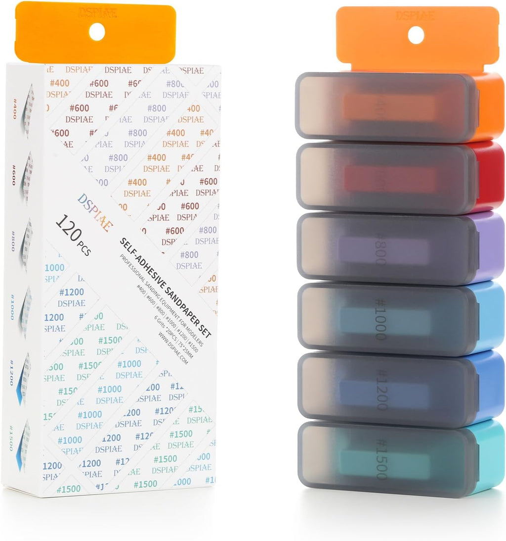 Includes 120 sheets of durable adhesive sandpaper across six essential grits, from #400 to #1500.