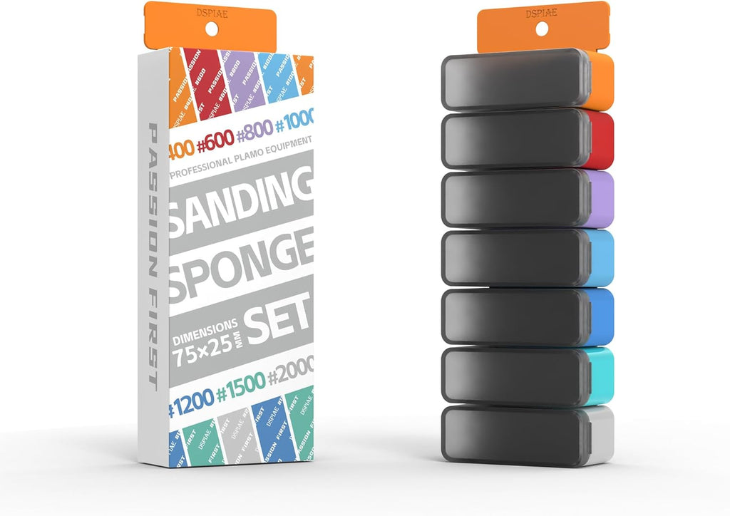 • Contents: 42 sanding sponges (6 of each grit: #400, #600, #800, #1000, #1200, #1500, #2000) and 1 storage case.
