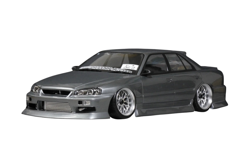 Returning by popular demand after a lengthy production hiatus, the Pandora RC PAB-3238 ER34 SKYLINE 4Dr reemerges with a new genuine hood to satisfy the passionate requests of drifting enthusiasts worldwide. This 1/10 scale unpainted polycarbonate body captures the elegant four-door silhouette of Nissan's R34 generation Skyline, now enhanced with separate component parts that reward careful builders with exceptional depth and realism. The ducted sections of the body require cutting to accommodate the included bumper inner, creating the dimensional appearance visible in product photography.