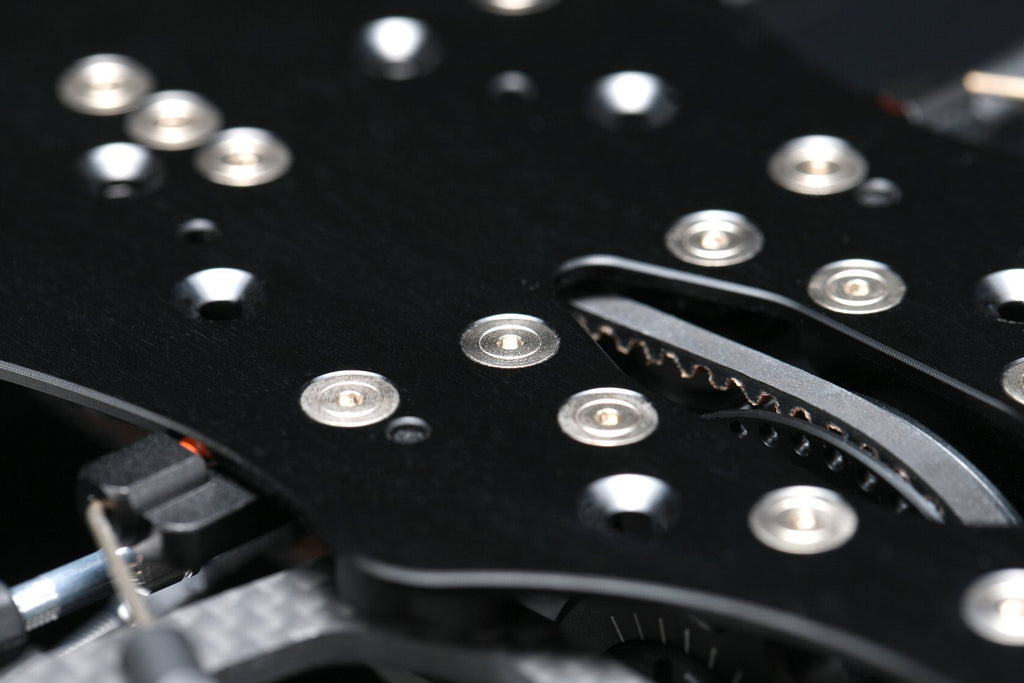 A 1.5mm thick aluminum main chassis reduces weight and encourages beneficial flex for increased traction.