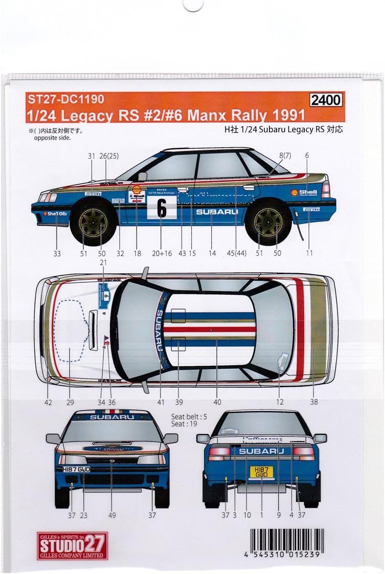 Bring the spirit of 1990s rally racing to your model shelf with the Studio27 DC1190 1/24 Legacy RS #2/#6 Manx Rally 1991 Decal Set , a premium decal sheet designed specifically for Hasegawa’s 1/24-scale Subaru Legacy RS4 kits. This detailed marking set recreates the bold livery and racing identity of the iconic #2 and #6 Subarus as they appeared during the challenging 1991 Manx Rally. Whether you're building a tribute to Colin McRae’s early career or honoring Subaru’s European rally heritage, these decals deliver authenticity with minimal effort and maximum impact.