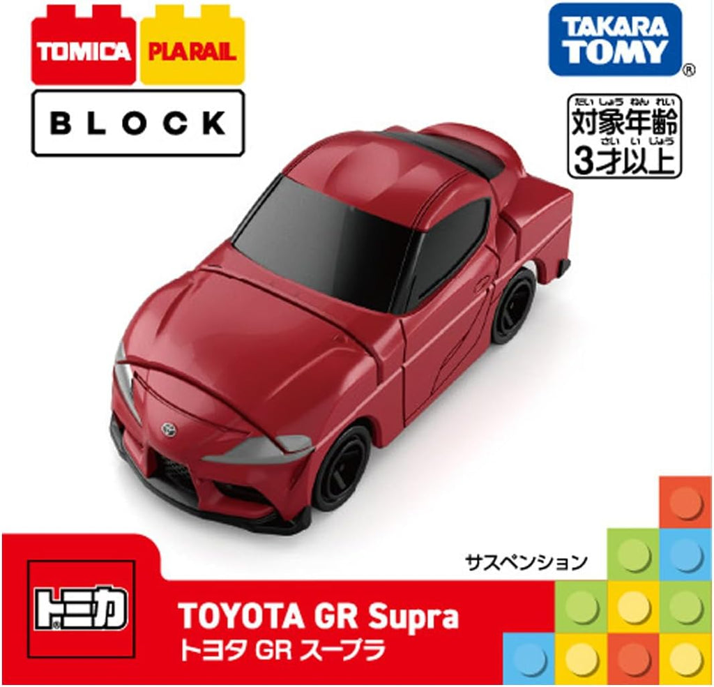 Assemble your own high-performance Toyota GR Supra with this engaging block set designed for young enthusiasts! Just 4 intuitive pieces snap together effortlessly, making it ideal for builders aged 3 and up experiencing their first model project. The working suspension adds realistic movement and play value. Pair it with Tomica Town roads to create dynamic driving scenarios and maximize creative play. Includes a straightforward assembly guide to get you building in minutes. Package dimensions: W80 × H80 × D40mm.