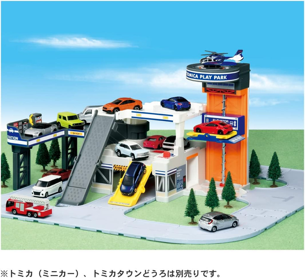 Expand your Tomica collection with this dynamic multi-level play park designed for endless vehicular adventures. Featuring a main body with integrated parking levels, a functional gas station, working car lift, and exciting ramps, this playset transforms how you organize and display your toy cars. The included heliport adds an extra dimension to storytelling possibilities. With multiple routes and interactive elements, it encourages creative play while keeping your Tomica vehicles neatly stored and easily accessible. Perfect for collectors and enthusiasts who want both functionality and play value in one compact set. Tomica cars sold separately.