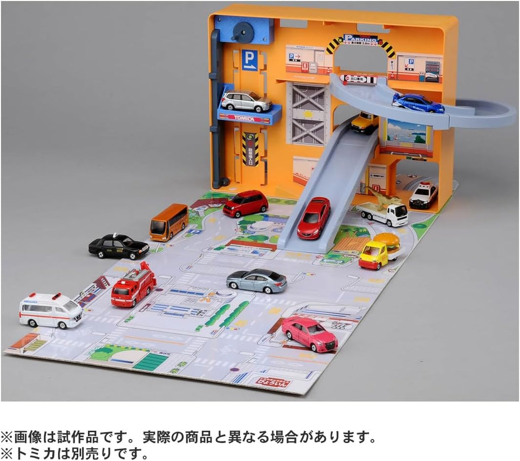Pocket-sized storage meets expansive play with this ingenious Tomica panorama case. Snap it shut for travel, then unfold a complete urban landscape featuring street scenery, climbing ramps, and an operational elevator. The integrated building accommodates up to 19 Tomica cars across dedicated parking zones, while pre-assembled slopes invite dynamic storytelling and exploration. Ideal for collectors seeking maximum play value without the bulk—your entire Tomica world folds into one convenient package.