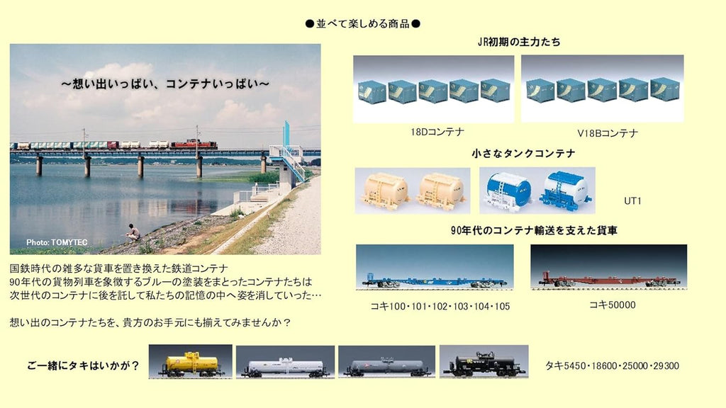 Designed for quick installation; mounts with a single touch onto TOMIX KOKI 5500, 50000, and 104 series flat cars, as well as other compatible container freight wagons.