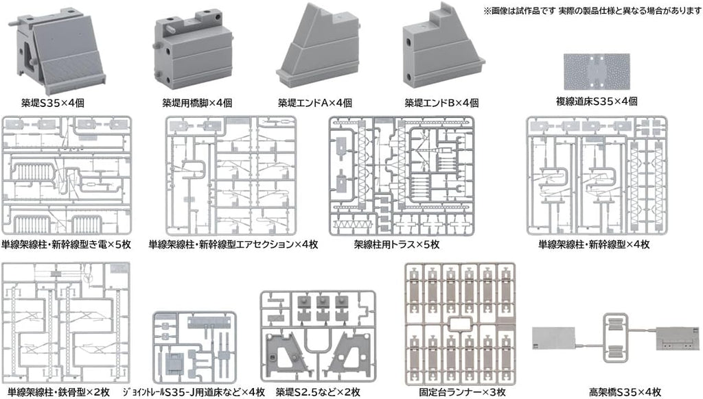 Accessories: Runner Parts (Embankment S2.5, Rail Bed for Joint Rail S35-J, Mounting Base Runner), Parts (Double-Line Rail Bed S35)