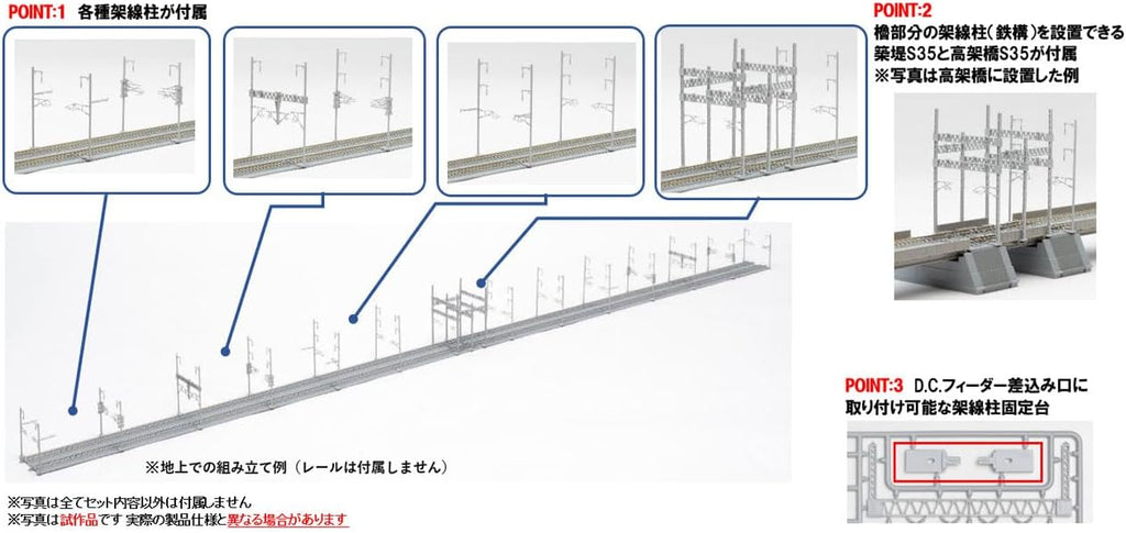 Elevate the authenticity of your N gauge railway with the TOMIX 3232 N Gauge Overhead Pole and Shinkansen Power Supply Set. This comprehensive kit provides a variety of overhead line components, including specialized parts resembling the "Kitten" sections, along with embankment and viaduct pieces. Tailored for realistic Shinkansen scenes, this set allows you to construct detailed infrastructure that brings your high-speed railway to life.