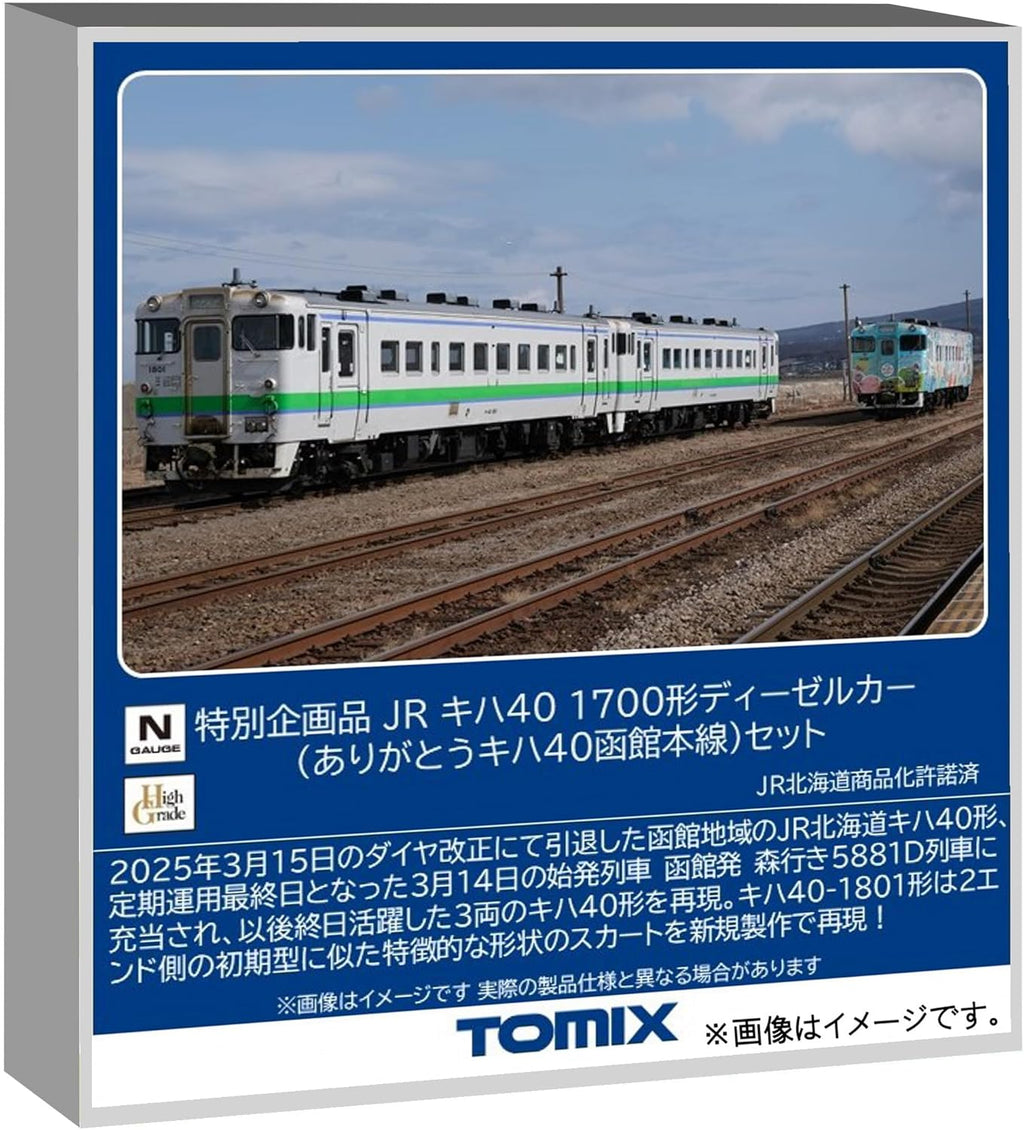 Honor the final run of Hokkaido's KIHA 40 fleet with TOMIX's Special Project 3-car set, commemorating the March 15, 2025 retirement from Hakodate Main Line service. This High Grade set recreates the last morning three-car formation from Hakodate to Mori, featuring KIHA40-1806 in JR Hokkaido colors, KIHA40-1801 with modified obstacle deflector, and KIHA40-1809 wearing "Harvest of the Southern Sea" decorations. The KIHA40-1809 transferred to Tomakomai Depot for continued Hidaka Main Line service.