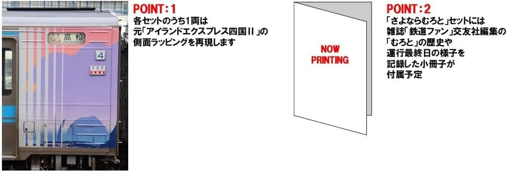 Includes: 8-page photo booklet (Muroto legacy), train mark runner parts, hood frames, transfer sheet