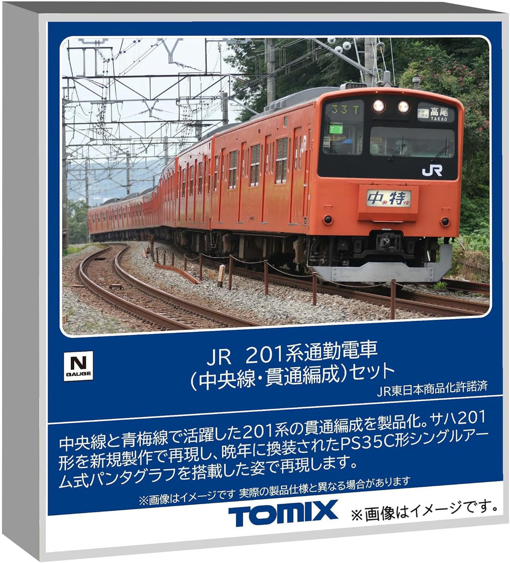 Chuo Line enthusiasts will treasure this full 10-car through formation, representing the 201 Series at its peak before E233 replacement. The orange vermilion bodies and single-arm pantographs capture the fleet's later years (2000-2008), while sealed connecting windows reflect post-1993 modifications. TOMIX's newly tooled SAHA201 and PS35C pantographs deliver accuracy for this historic commuter fleet. Build the train that modernized JNR suburban service.
