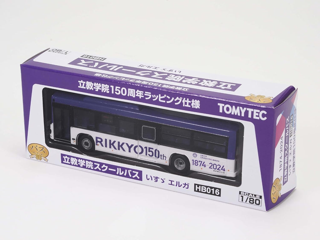 Celebrate a significant milestone in academic history with the TOMYTEC HB016 The Bus Collection 80 Rikkyo Gakuin School Bus. This 1/80 scale model represents the actual vehicles connecting Rikkyo Gakuin Niiza Campus with Fujimi Ground, Shiki Station on the Tobu Tojo Line, and Niiza Station on the JR Musashino Line. Operated by Seibu Sogo Kikaku of the Seibu Bus Group, these buses feature a distinctive design that deliberately departs from standard Seibu Bus route colors, making them a visually striking addition to any collection. This particular release commemorates the 150th anniversary of Rikkyo Gakuin in 2024, with the special anniversary logo faithfully displayed on the body.