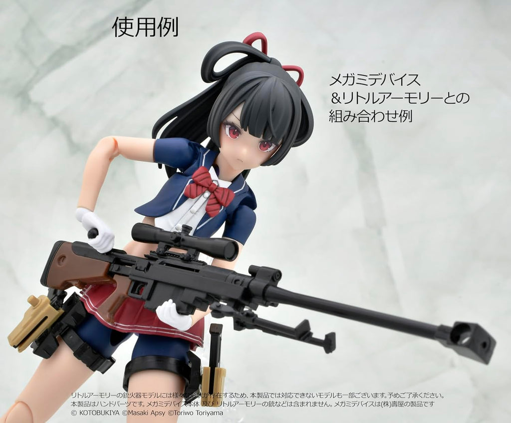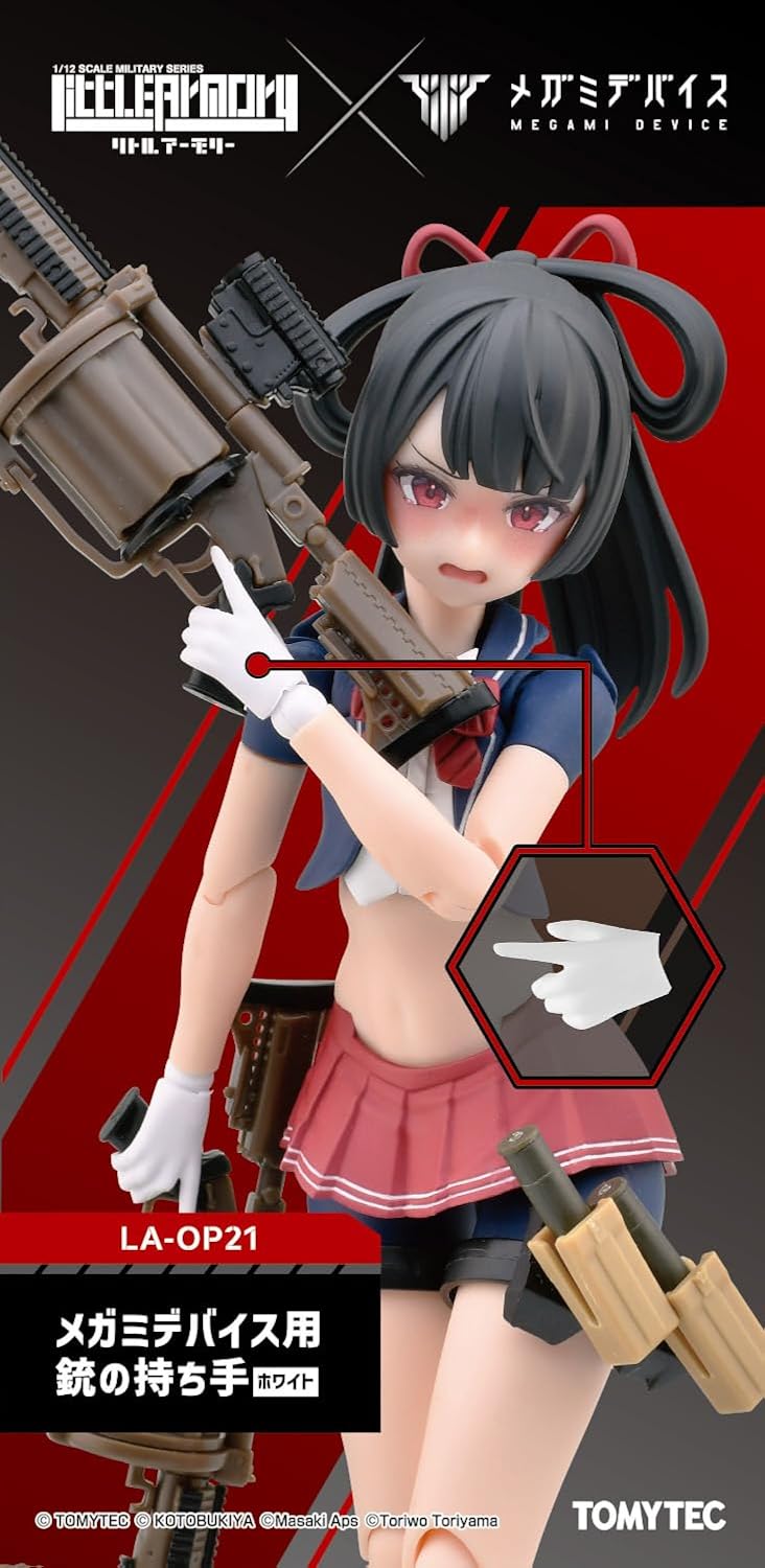 Equip your Megami Device kits for realistic tactical action with the Little Armory Gun Handle set. These specialized white hands are engineered to give your figures a firm and natural grip on a wide array of realistic miniature firearms.