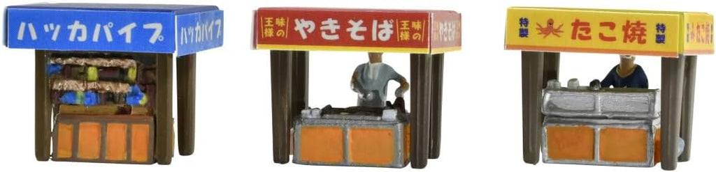 Expand your festival marketplace with this second set of charming vendor stalls. Featuring three new stall designs with a slightly lower profile, complete with shopkeepers and decorative stickers, this kit adds further variety and depth to create a truly bustling N-scale festival lane.