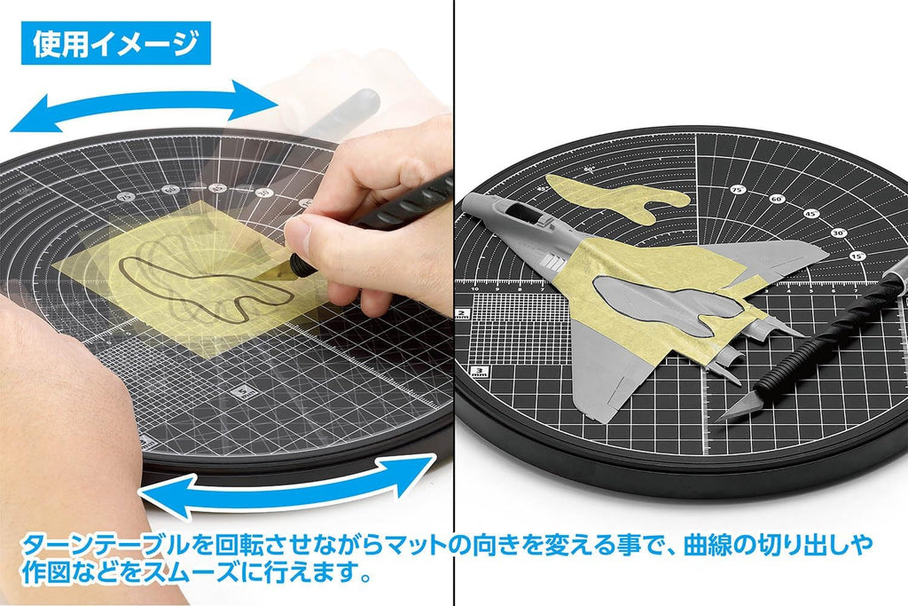 • Set includes 260mm diameter round cutting mat and manual turntable base